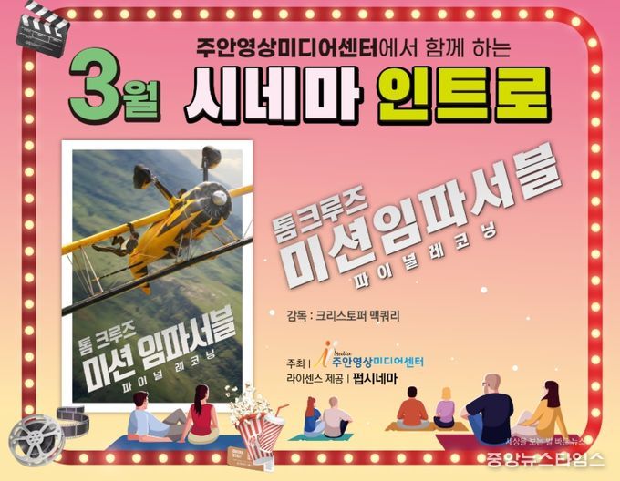 (중앙뉴스타임스 = 방재영 기자) 인천 미추홀구 주안영상미디어센터(센터장 장구보, 이하 센터)가 주민들을 위한 정기 영화 상영 프로그램 ‘시네마 인트로(Cinema Intro)’를 운영한다고 6일 밝혔다.