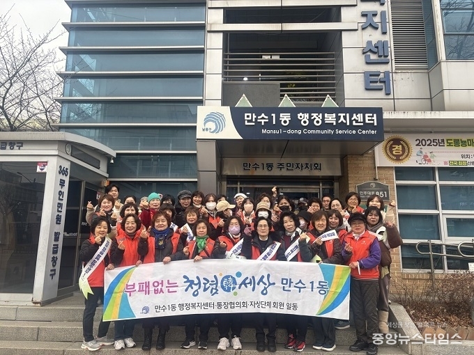 (중앙뉴스타임스 = 방재영 기자) 인천 남동구 만수1동 행정복지센터는 최근 주민자치회, 통장자율회, 새마을협의회 등 만수1동 자생 단체들과 함께 지역사회 청렴 문화 확산을 위한 청렴 캠페인을 진행했다고 12일 밝혔다.
