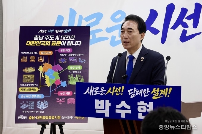 (중앙뉴스타임스 = 방재영 기자) 박수현 충남·대전통합특별시장 출마예정자가 공동선거대책본부장을 선임하고 1호 공약으로 ‘충남 AI대전환'을 발표하며 본격적인 경선 레이스에 돌입했다.