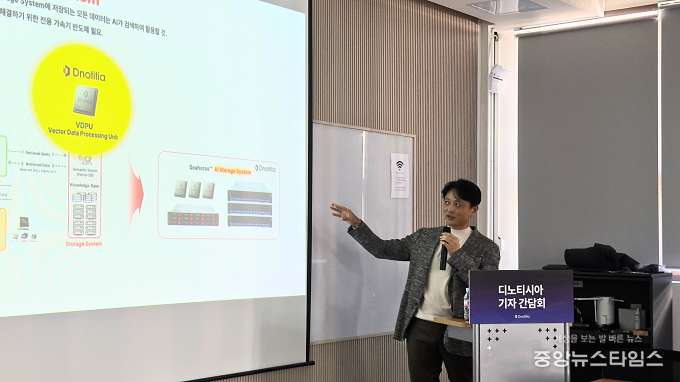 벡터 데이터베이스 ‘씨홀스(Seahorse)’와 전용 데이터 연산 가속 반도체(VDPU: Vector Data Processing Unit)를 자체 설계·개발해온 디노티시아(Dnotitia Inc., 대표이사 정무경)는 기자간담회를 통해 이러한 변화에 대응하는 추론 특화 ‘AI Storage’ 전략을 공식화했다. 디노티시아는 벡터 데이터베이스, 전용 가속 반도체, 장기기억 기술에 더해 생성형 AI의 단기 작업 메모리인 KV(Key-Value) Cache까지 아우르는 AI 기억 전반을 단일 데이터 스택으로 통합하겠다는 방향을 제시했다.