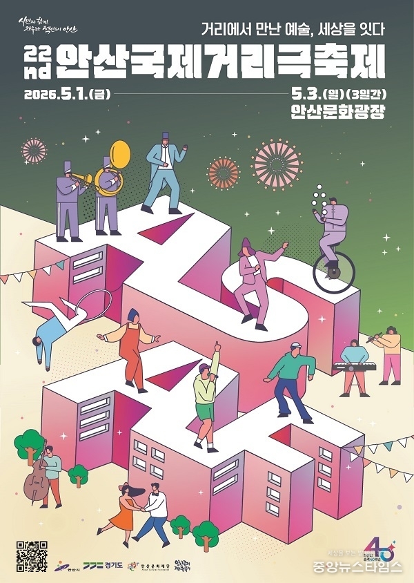 (중앙뉴스타임스 = 방재영 기자) 안산시와 안산문화재단이 오는 5월 1일부터 3일까지 안산문화광장에서 개최되는 ‘2026 제22회 안산국제거리극축제’의 공식 슬로건과 포스터, 그리고 공연 프로그램을 전격 공개했다.