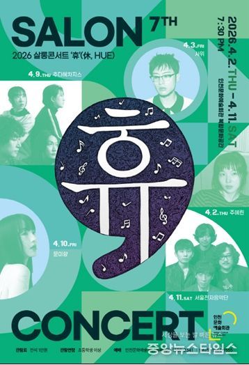 시 인천문화예술회관 관계자는 “살롱콘서트 ‘휴’는 독립음악 뮤지션들의 진솔한 창작 세계를 가까이에서 만날 수 있는 공연”이라며 “조용하지만 깊은 울림을 전하는 음악을 통해 관객들이 서로의 삶을 공감하고 위로받는 시간이 되길 바란다”고 말했다.