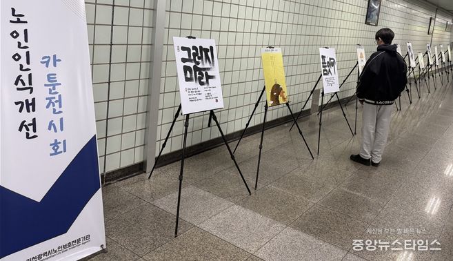 (중앙뉴스타임스 = 방재영 기자) 인천시사회서비스원 소속 인천시노인보호전문기관은 오는 27일까지 인천지하철 1호선 동춘역사에서 ‘노인인식개선 카툰 전시회’를 연다고 25일 밝혔다.