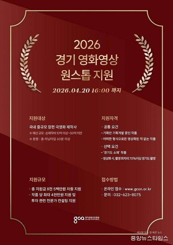 ![경기 영화영상 원스톱 지원 모집 공고 포스터[경콘진 제공]](http://www.jnewstimes.com/data/photos/20260313/art_17747537309895_5ea65a.jpg)