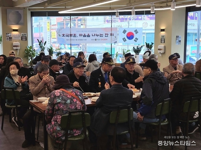 (중앙뉴스타임스 = 방재영 기자) 인천 부평구 삼산2동은 30일 삼산한식뷔페에서 지역 내 국가유공자 40명을 초청해 감사의 뜻을 전하는 식사 나눔 행사를 개최했다.