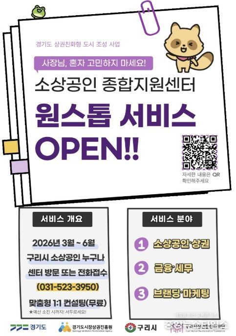 (중앙뉴스타임스 = 방재영 기자) 구리시상권활성화재단은 소상공인의 경영 애로를 원스톱으로 해결하는 ‘원스톱 지원 서비스’를 공식 개시하고, 6월 10일까지 밀착형 지원을 운영한다고 3일 밝혔다.