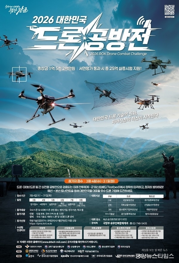이번 대회는 국방부를 비롯해 과학기술정보통신부, 산업통상부, 국토교통부, 중소벤처기업부, 방위사업청이 함께하는 다부처 협력 행사로 추진된다. 단순한 기술 시연이 아닌 실전형 드론 공방전을 통해 국방 무인체계 발전은 물론 관련 산업 육성까지 함께 이끌겠다는 점에서 의미가 크다. 이에 따라 드론과 대드론 분야를 중심으로 다양한 국내 기업들의 참여가 이어질 것으로 전망된다.