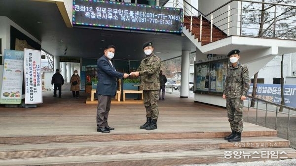 (중앙뉴스타임스 = 방재영 기자) 양평군 옥천면 1795부대 질풍봉사단에서는 지난 15일 추운 한파로 꽁꽁 얼어붙은 날씨에도 불구하고 옥천면사무소를 방문해 어려운 이웃을 위해 써달라며 후원금 50만원을 전달했다.