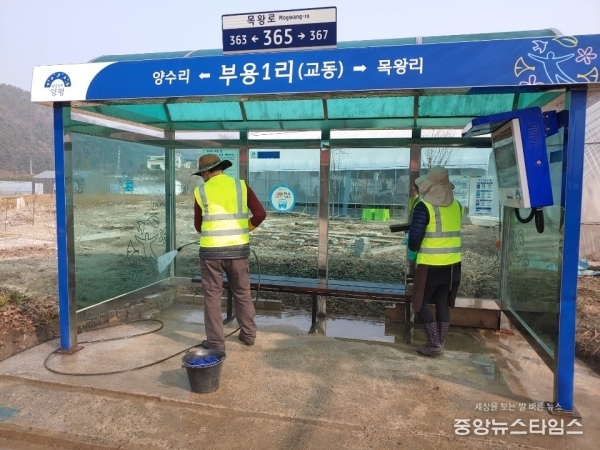 (중앙뉴스타임스 = 방재영 기자) 양평군에서는 지난해에 이어 올해도 ‘양평일자리 체인지업 프로젝트’ 사업을 통한 버스승강장 환경정비 사업 및 시설물 점검과 승강장 방역소독에 나선다.