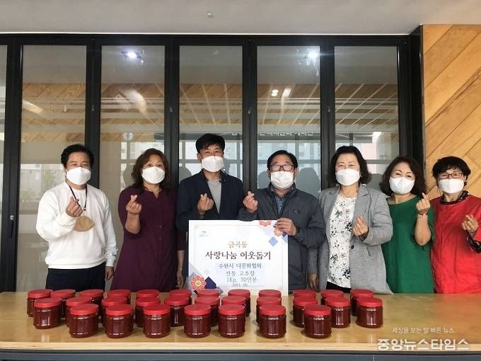 (중앙뉴스타임스 = 방재영 기자) 수원시 다문화협회는 18일 수원시 권선구 금곡동 행정복지센터를 찾아 관내 어려운 이웃에게 전해달라며 70인분의 전통 고추장을 전달했다.
