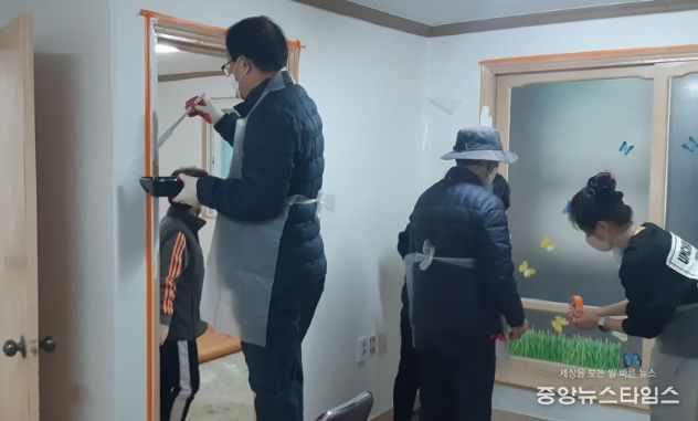 이날 활동에는 동부재가노인지원서비스센터 직원들과 노인일자리 사회서비스형 참여자 4명(前 수동면노인회장 이희원 외 3명)이 참여해 출입문의 내부를 도색하고, 청소하는 등 저소득 독거어르신의 생활환경을 개선했다.