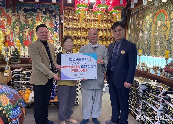 천년고찰 동사 상우 주지스님은 “사회적 약자들을 위해 뜻깊은 후원을 할 수 있게 되어 기쁘고 앞으로도 소외된 이웃들을 위해 앞장서겠다.”라고 말했다.