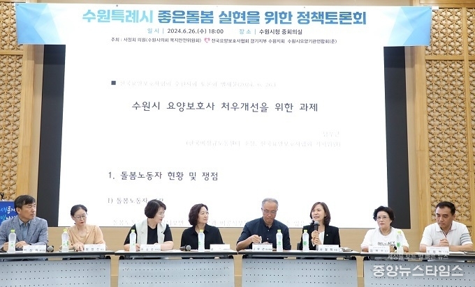 좌장을 맡은 사정희 의원은 “고품질의 복지서비스는 양질의 근무 환경에서 비롯된다”며 “수원시 요양보호사분들의 복지향상과 처우개선을 위해 의회차원에서 끊임없이 관심을 가지고 지원하겠다”고 밝혔다.