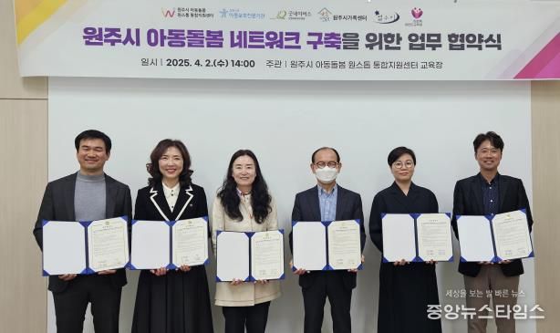 (중앙뉴스타임스 = 방재영 기자) 원주시 아동돌봄 원스톱통합지원센터는 지난 2일 돌봄 관련 5개 기관과 지역사회 아동돌봄 네트워크 구축을 위한 업무협약을 체결했다.
