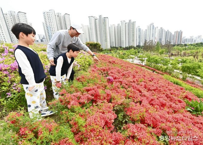 (중앙뉴스타임스 = 방재영 기자) 5월, 봄의 정점에서 만나는 붉은 꽃물결. 미사한강공원 2호 전망대 인근 철쭉동산이 다시금 만개하며, 하남의 또 다른 봄꽃 명소로 주목받고 있다.