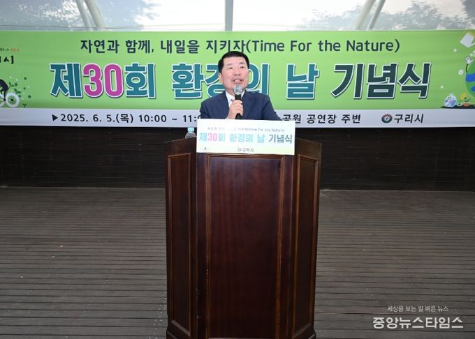(중앙뉴스타임스 = 방재영 기자) 구리시는 세계 환경의 날을 맞아 5일 시민들이 환경 보전 의식을 함양하고 환경 보호 활동에 참여하는 계기를 마련하기 위해 ‘2025년 제30회 환경의 날 기념식’을 개최했다.