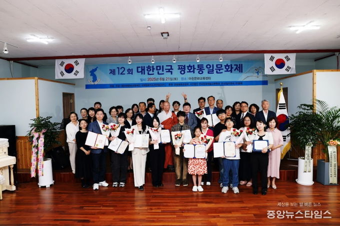 (중앙뉴스타임스 = 방재영 기자) 재단법인 아천문화교류재단(ACEF)과 국제평화지도자연합(IAPL)이 주최-주관한 ‘제12회 대한민국 평화통일문화제’가 21일 오후 3시 아천문화교류센터에서 시상식이 개최됐다. 이날 행사는 통일에 대한 올바른 가치관을 심어주기 위해 문화예술 부문의 우수한 인재들을 발굴 시상하고 있으며, 올해로 12회를 맞았다.