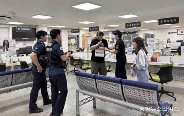 행정복지센터 전 직원과 인창지구대 경찰관이 참여한 이번 훈련은 특이 민원인이 민원 처리에 불만을 제기하며 고성을 지르고 위협하는 상황을 가정하여, 비상벨 작동, 초동 대응, 인창지구대 협조 요청, 민원인과 직원 대피 유도 등의 절차를 실제 상황처럼 진행했다.