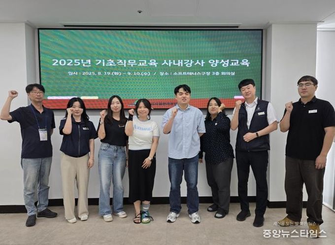 (중앙뉴스타임스 = 방재영 기자) 안성시시설관리공단은 지난 8월 19일부터 9월 10일까지 3회차에 걸쳐 총12시간 동안 공단 기초공통직무 담당자 8명을 대상으로 ‘2025년 기초직무교육 사내강사 양성교육’을 실시했다.