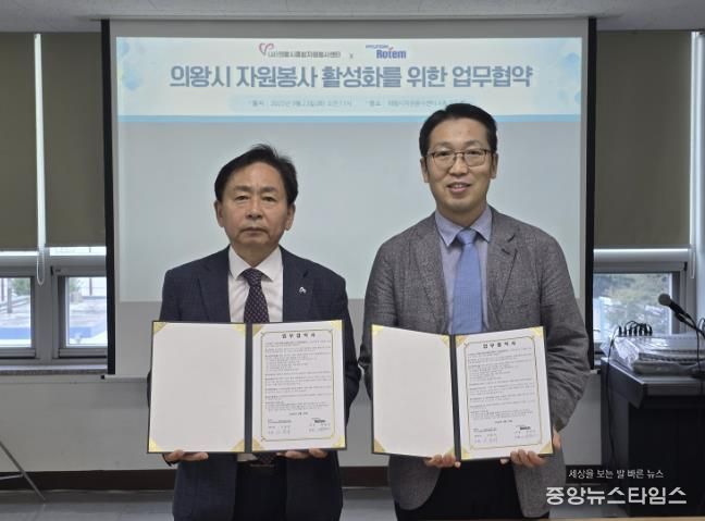 (중앙뉴스타임스 = 방재영 기자) (사)의왕시종합자원봉사센터는 현대로템(주)과 9월 23일 센터 교육장에서 자원봉사 활성화를 위한 업무협약(MOU)을 체결했다.