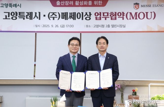 (중앙뉴스타임스 = 방재영 기자) 고양특례시는 국내 대표 전시 주최사 ㈜메쎄이상(대표 조원표)이 지자체와는 최초로 출산 장려 활성화 및 건강한 양육 문화 조성을 위해 손을 잡았다고 밝혔다.