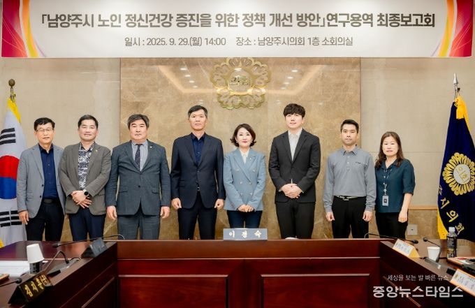 (중앙뉴스타임스 = 방재영 기자) 남양주시의회는 29일 남양주시의회 소회의실에서 의원 연구단체인 ‘남양주시 노인 정신건강 증진을 위한 정책 개선방안 연구모임’의 연구용역 최종보고회를 개최했다.