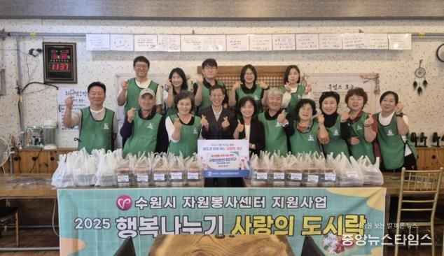 (중앙뉴스타임스 = 방재영 기자) 수원시 팔색조 봉사단은 김미경 수원특례시 의원과 함께 지난 30일 수원시 팔달구 매교동행정복지센터에 관내 어려운 이웃 50가구에 사랑의 도시락(매운갈비찜, 미역줄기, 멸치볶음 등)을 후원했다.