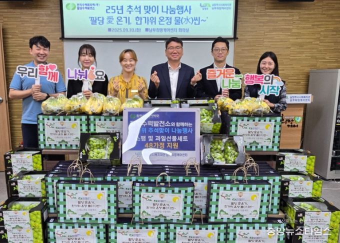 (중앙뉴스타임스 = 방재영 기자) 남양주시는 9월 30일 남부희망케어센터가 한국수력원자력(주)팔당수력발전소의 후원을 받아 ‘팔당愛 온기, 한가위 온정 물(水)씬~’이라는 이름으로 2025년 추석 명절맞이 나눔행사를 진행했다고 밝혔다.