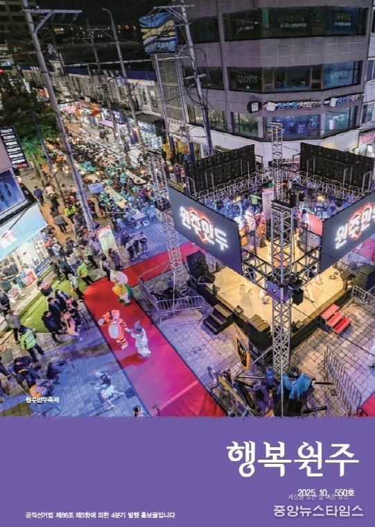(중앙뉴스타임스 = 방재영 기자) 행복원주 10월호에서는 새롭GO, 변화GO, 채우GO, 늘리GO 민선8기 시민과 함께한 3년을 경제·교육·교통·안전·복지·환경 분야로 담았으며, 원주에서 열리는 축제 행사 안내와 다양한 원주 소식도 소개했다.