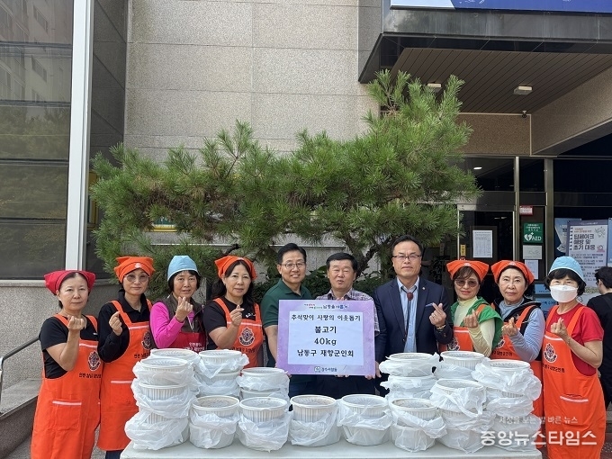 (중앙뉴스타임스 = 방재영 기자) 인천 남동구 장수서창동 행정복지센터는 남동구 재향군인회, 재향군인 여성회로부터 다가오는 추석 명절을 맞아 따뜻한 나눔을 실천하기 위해 소불고기 40kg을 기부했다고 2일 밝혔다.
