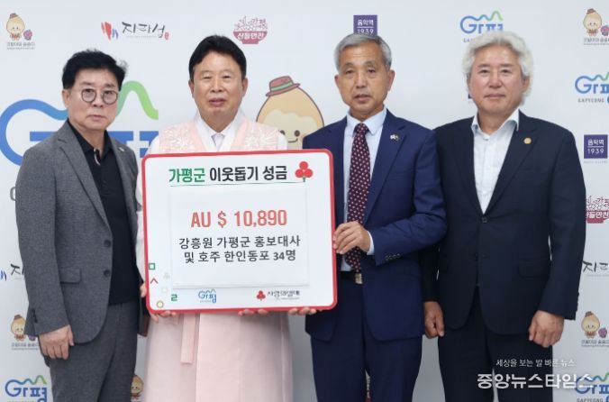 강흥원 홍보대사는 “호주 곳곳에 사는 교민들이 호우 피해 주민들에게 위로와 힘이 되기를 바라는 마음으로 성금을 모았다”며 “이를 계기로 가평군과 호주 교민 사회 간의 우정이 더욱 굳건하게 이어지길 바란다”고 전했다.
