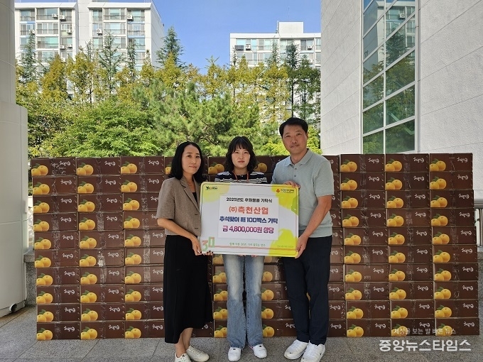 구는 지난 1일 ㈜측천산업(대표 임성배)으로부터 도움이 필요한 이웃들을 위한 배 100박스를 전달받아, 관내 무료 급식소와 사회복지시설에 전달했다.