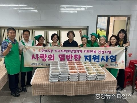 (중앙뉴스타임스 = 방재영 기자) 인천 남동구 만수5동 행정복지센터는 지역사회보장협의체, 새마을부녀회, 통장자율회 등과 함께 추석을 맞아 홀몸 어르신 40세대에 밑반찬을 전달하고 안부를 확인했다고 10일 밝혔다.