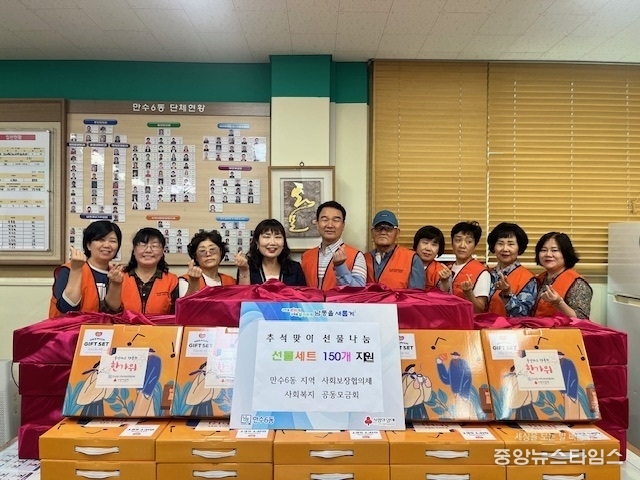 (중앙뉴스타임스 = 방재영 기자) 인천 남동구 만수6동 지역사회보장협의체(위원장 이재봉)는 추석 명절을 맞아 취약가구 150세대에 참치 햄 세트와 과일상자를 전달했다고 10일 밝혔다.