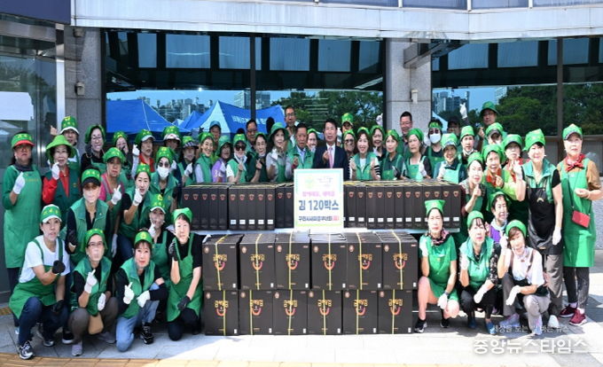(중앙뉴스타임스 = 방재영 기자) 구리시 새마을부녀회는 지난 2일 구리시청 민원 광장에서 소외되고 어려운 이웃들이 따뜻한 명절을 보낼 수 있도록 ‘함께해요. 새마을, 행복한 추석 김 전달 행사’를 개최했다고 밝혔다.