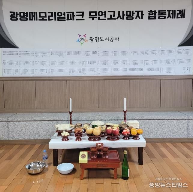 (중앙뉴스타임스 = 방재영 기자) 광명도시공사는 지난 6일 추석을 맞아 일직동 메모리얼파크 무연고단에 안치된 영령들의 외로운 넋을 기리는 합동제례를 봉행했다.