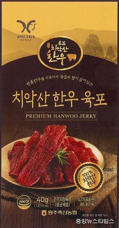 (중앙뉴스타임스 = 방재영 기자) 원주시 대표 한우 브랜드인 치악산한우 육포가 2025년 아시아태평양경제협력체(APEC) 정상회의 공식 협찬품으로 선정됐다.