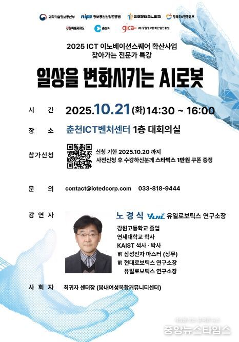 (중앙뉴스타임스 = 방재영 기자) 과학기술정보통신부와 정보통신산업진흥원이 주최하고 강원정보문화산업진흥원이 운영하는 '2025년 ICT 이노베이션스퀘어 확산사업'의 일환으로 추진 중인 ‘찾아가는 전문가 특강’이 지역 현장의 디지털 전환을 견인하고 있다.