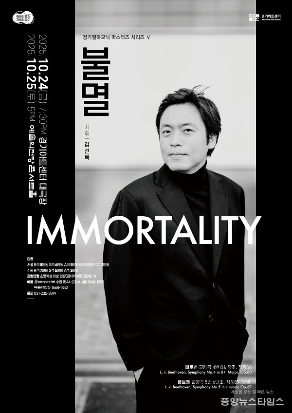 (중앙뉴스타임스 = 방재영 기자) 경기필하모닉오케스트라가 오는 24일 경기아트센터 대극장과 25일 예술의전당 콘서트홀에서 ‘경기필 마스터즈 시리즈 V <불멸>’을 선보인다.
