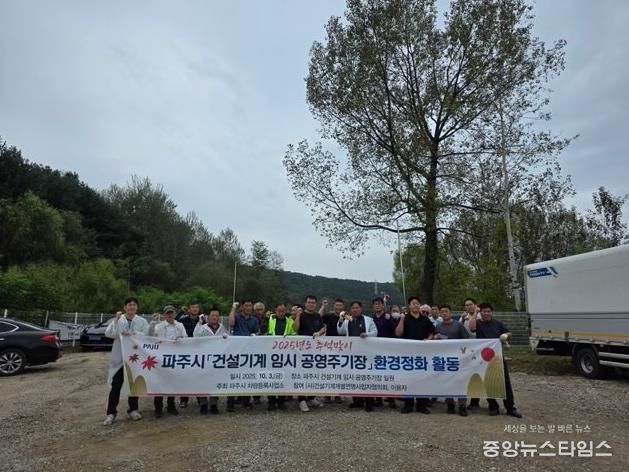 이번 활동에는 ㈔건설기계개별연명사업자협의회 파주지회와 주기장 이용자 등 40여 명이 참여했으며, 방치된 생활 쓰레기와 각종 폐기물 약 5톤을 집중 수거했다.