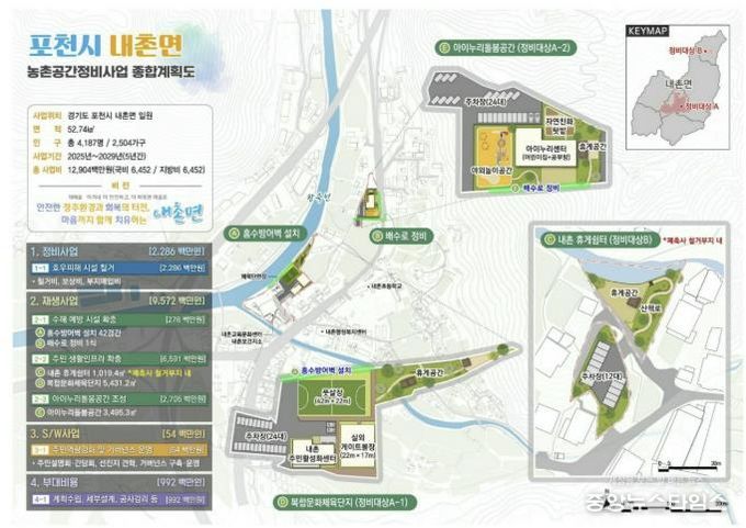 (중앙뉴스타임스 = 방재영 기자) 포천시가 농림축산식품부가 추진한 ‘2025년 농촌공간정비 추가공모사업’에 선정되어, 2029년까지 내촌면 일원에서 추진할 공간정비사업 예산 129억 원을 확보했다.