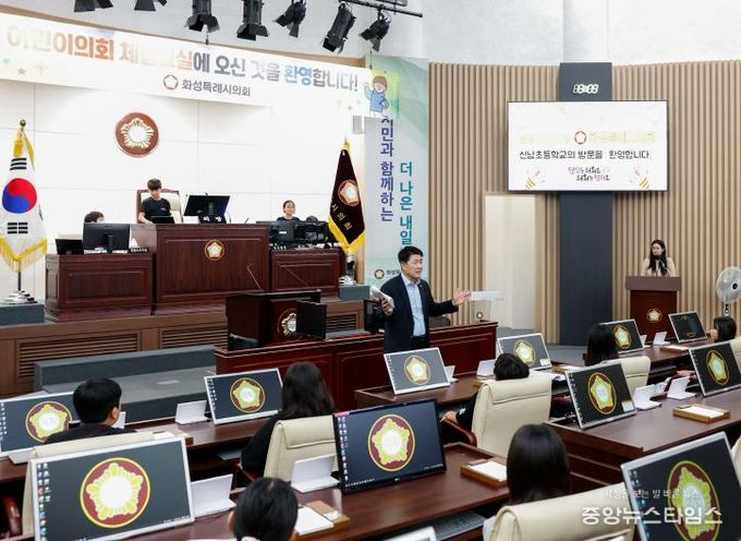 (중앙뉴스타임스 = 방재영 기자) 화성특례시의회는 13일, 남양읍에 위치한 신남초등학교 학생들을 대상으로 ‘어린이의회 체험 교실’을 운영했다.