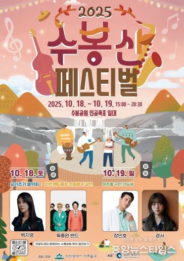 (중앙뉴스타임스 = 방재영 기자) 인천 미추홀구는 수봉공원 인공폭포 일대에서 오는 18~19일 ‘제5회 수봉산 페스티벌’을 개최한다고 14일 밝혔다.