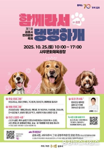 (중앙뉴스타임스 = 이광운 기자) 김포시는 반려동물과 시민이 함께하는 문화의 장인 제1회 김포시 반려문화축제 '함께라서 댕댕하개 in 김포'가 오는 10월 25일 사우문화체육광장(사우동)에서 개최된다고 밝혔다.
