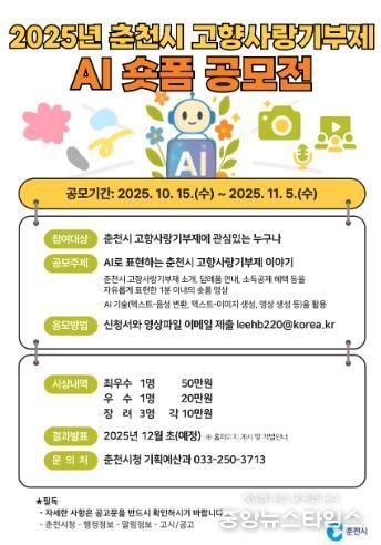 주제는 ‘AI로 표현하는 춘천시 고향사랑기부제 이야기’로 춘천시 고향사랑기부제에 관심있는 누구나 참여할 수 있다.