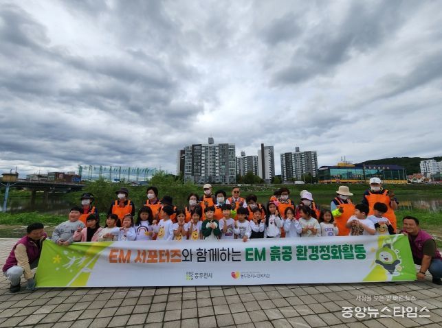 (중앙뉴스타임스 = 방재영 기자) 동두천시는 지난 14일 신천교 부근에서 동두천시노인복지관 EM서포터즈 어르신 15명과 관내 좋은열매어린이집 원아 18명이 참여한 가운데 ‘EM 흙공 던지기’ 행사를 진행했다.