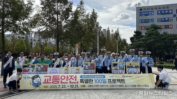 (중앙뉴스타임스 = 방재영 기자) 파주시는 교통사고 사망자 수 30% 감축을 통한 ‘교통안전 선도도시’ 도약을 목표로 지난 7월 23일부터 시민과 함께하는 ‘교통안전, 특별한 100일 프로젝트가 순항 중이라고 밝혔다.