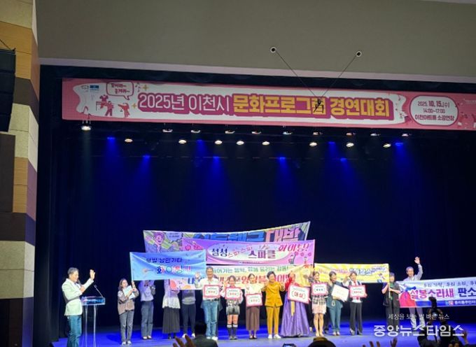 (중앙뉴스타임스 = 이광운 기자) 이천시는 2025년 10월 15일 이천아트홀 소공연장에서 14개 읍면동 약 450명의 시민과 함께 각 지역의 특색있는 문화와 예술적 역량을 발휘하는 ‘이천시 문화프로그램 경연대회’를 성황리에 마쳤다고 밝혔다.