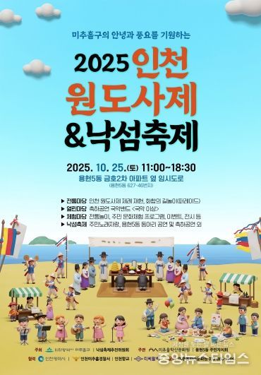 (중앙뉴스타임스 = 방재영 기자) 인천 미추홀구는 오는 25일 용현5동 금호2차아파트 옆 임시도로 일대(627-46번지)에서 ‘인천 원도사제(仁川 猿島祠祭) 및 낙섬축제’를 개최한다.