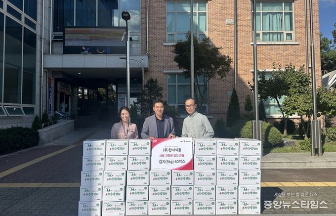 (중앙뉴스타임스 = 방재영 기자) 시흥시 정왕본동에 있는 ㈜한서식품은 지난 16일 정왕본동 행정복지센터(동장 박래천)의 어려운 이웃을 위해 김치(5kg) 40상자를 기부했다.
